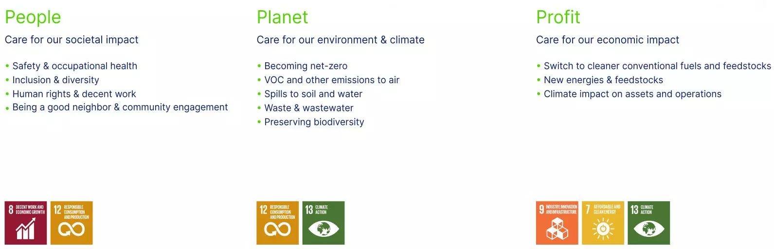 On sustainability, we are ambitious and performance driven with a balanced roadmap focusing on care for people, planet and profit. Safety is our first priority. We want to facilitate the introduction of the sustainable vital products of the future while reducing our own environmental footprint.